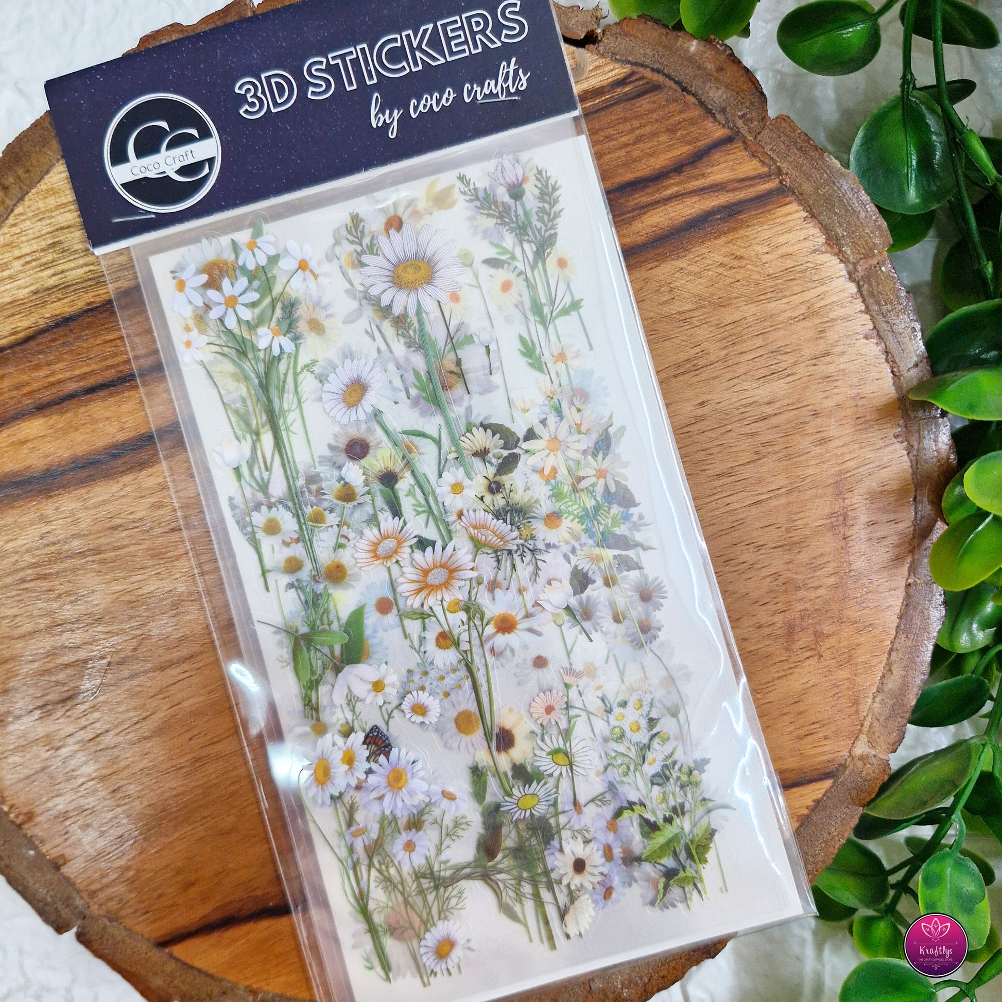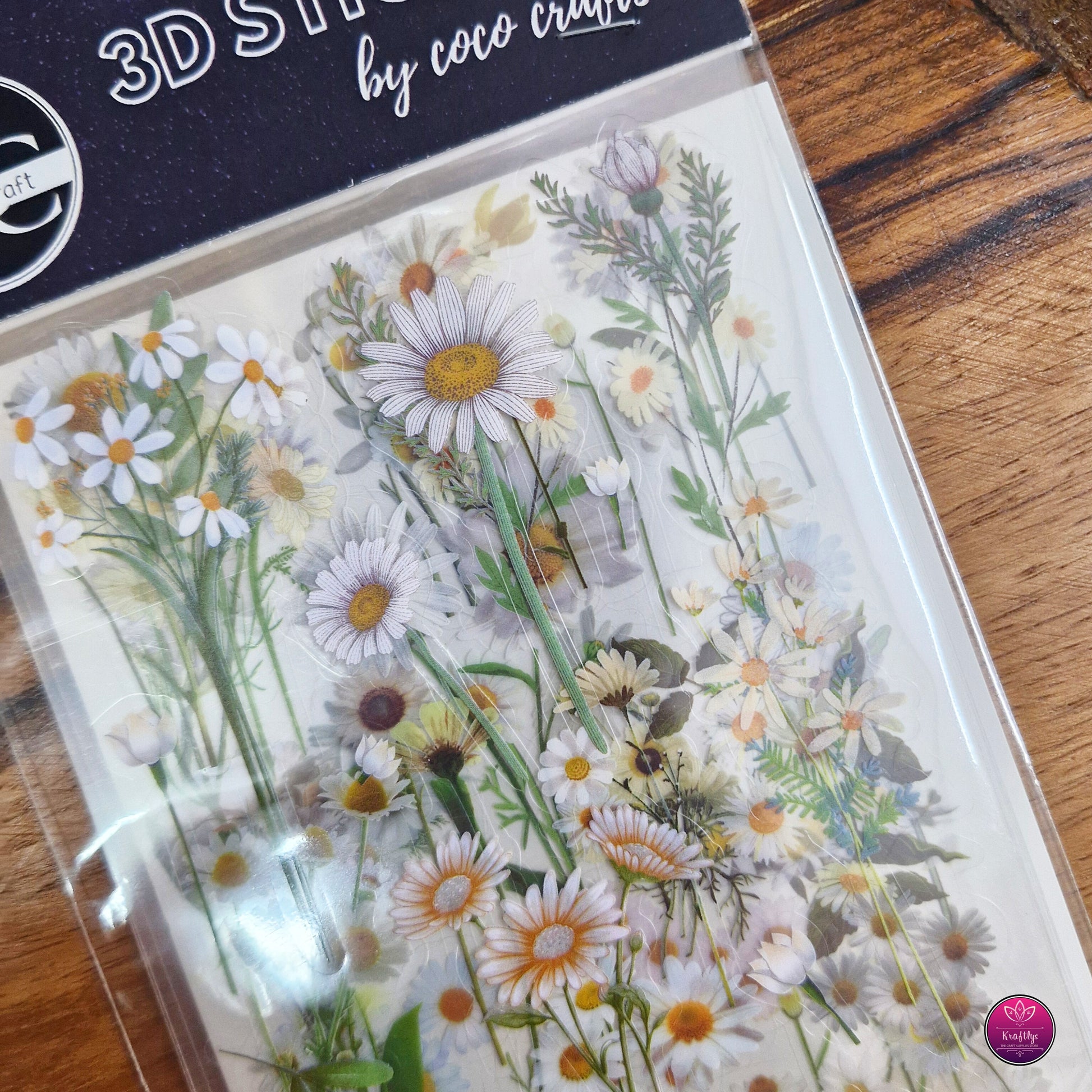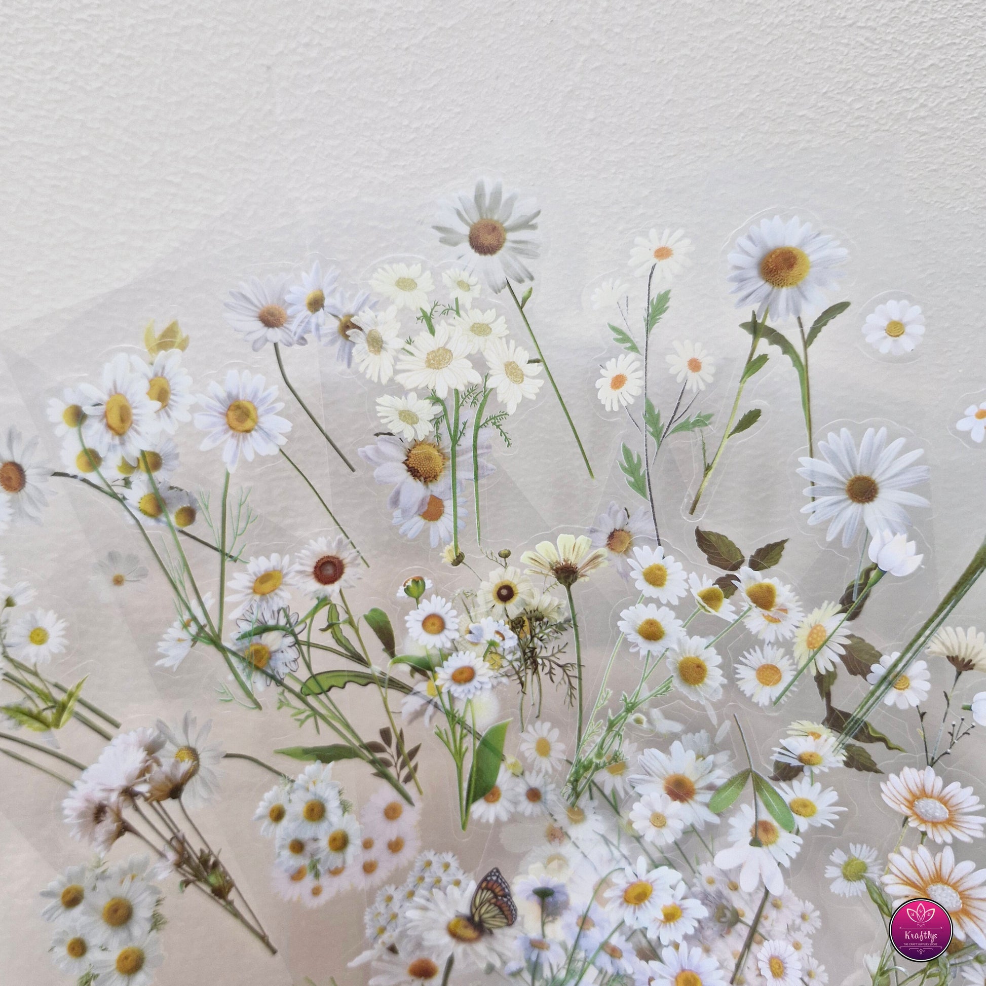 Set of 6 - CUTE TRANSPARENT PINTERESTY FLORAL STICKER - WHITE FLOWERS