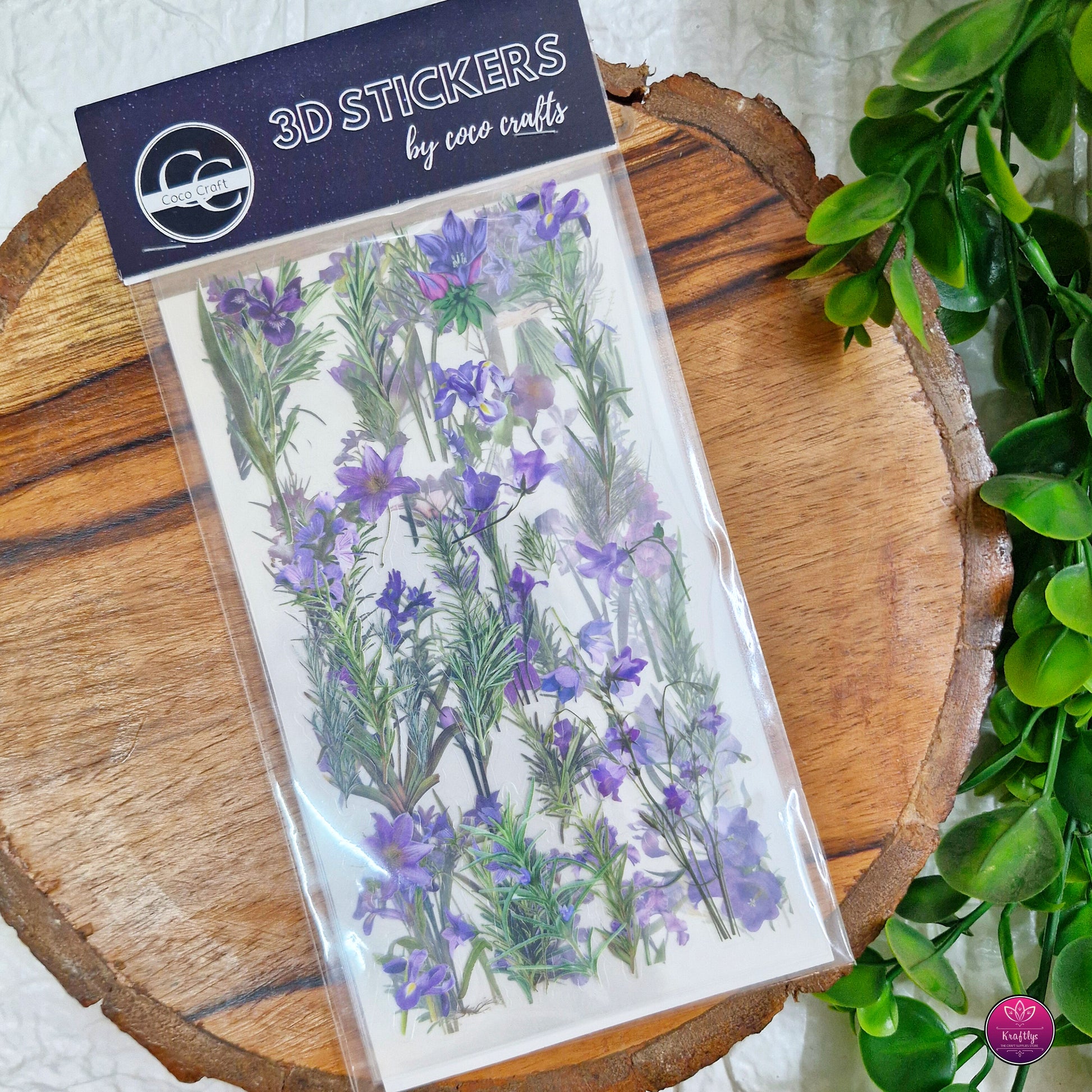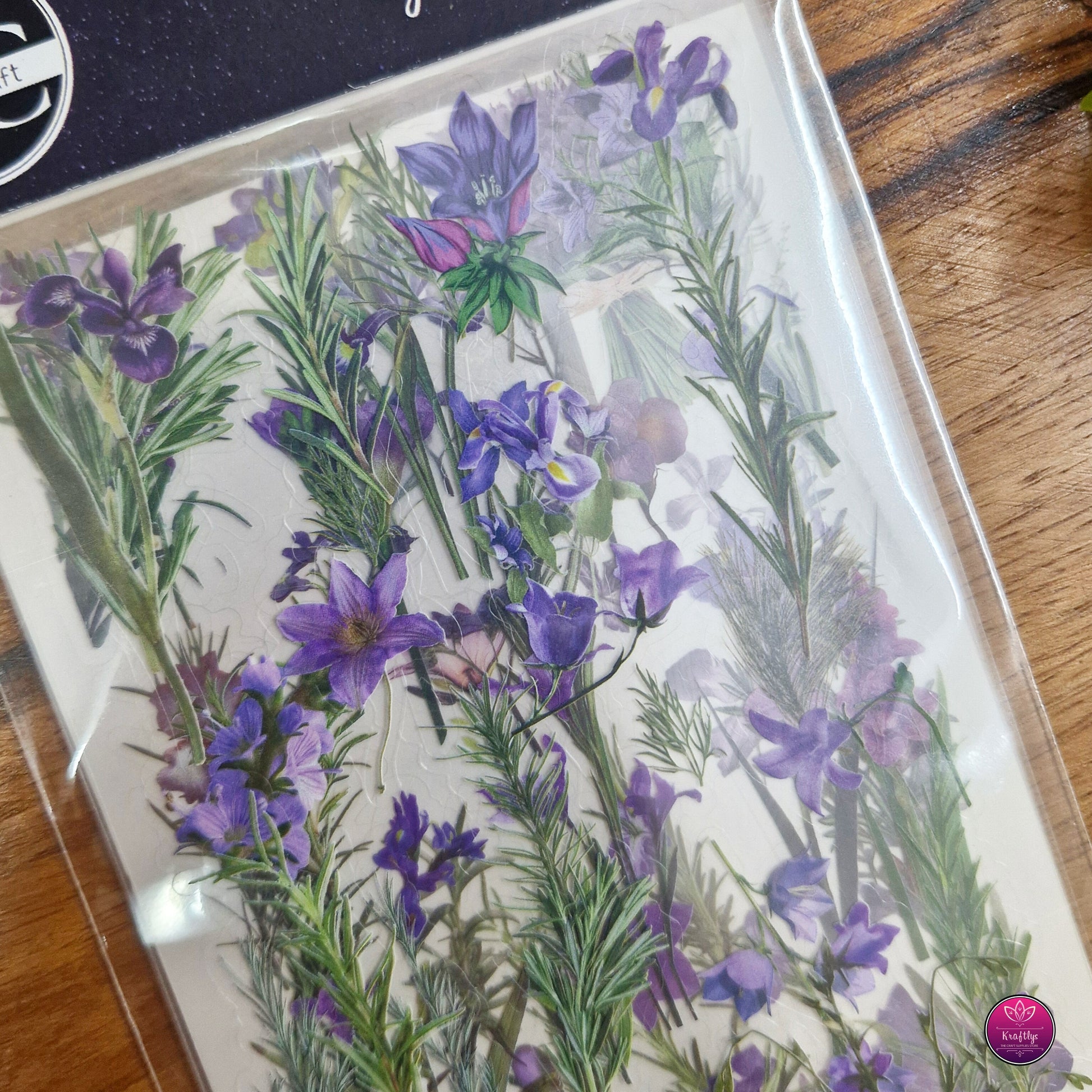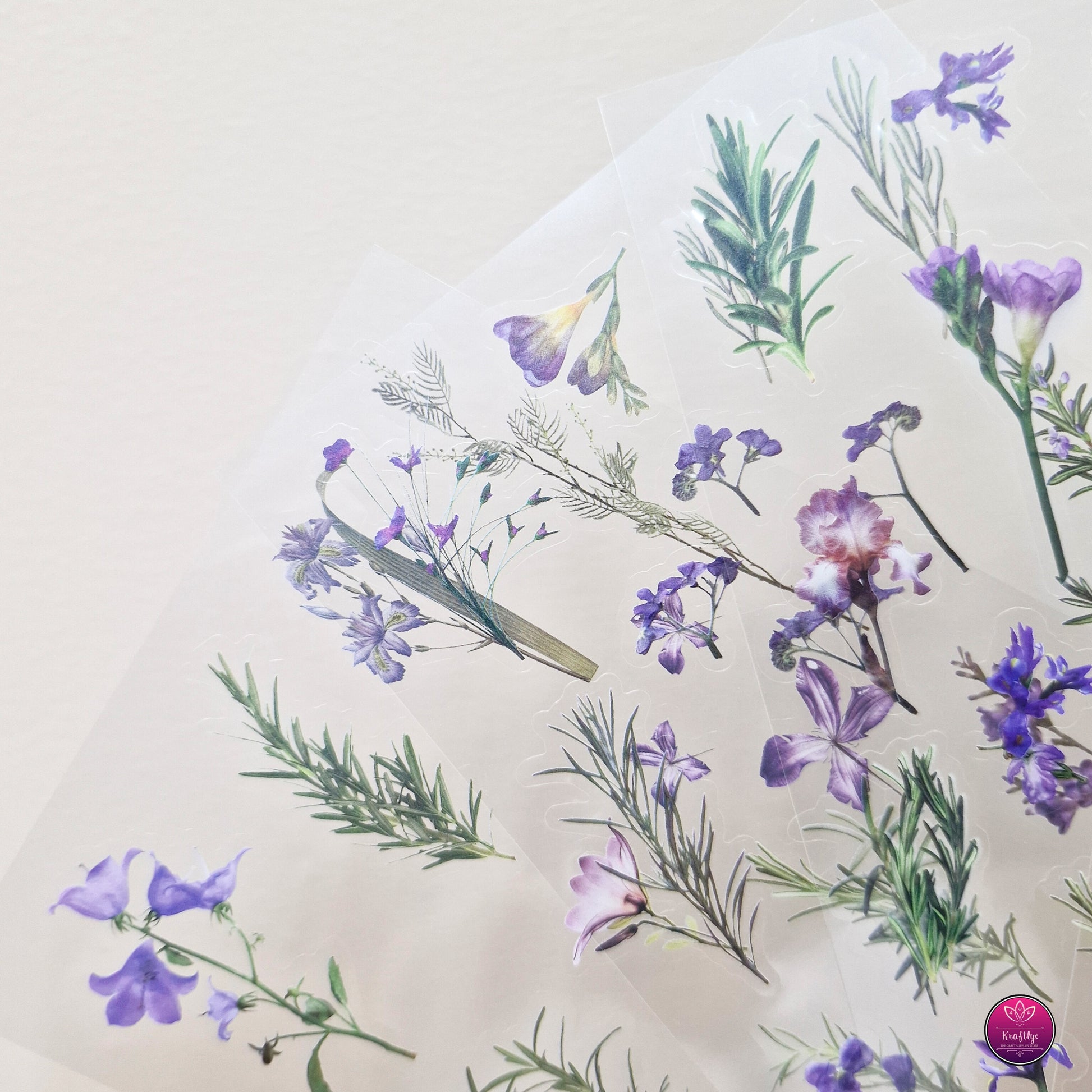 Set of 6 - CUTE TRANSPARENT PINTERESTY FLORAL STICKER - PURPLE FLOWERS