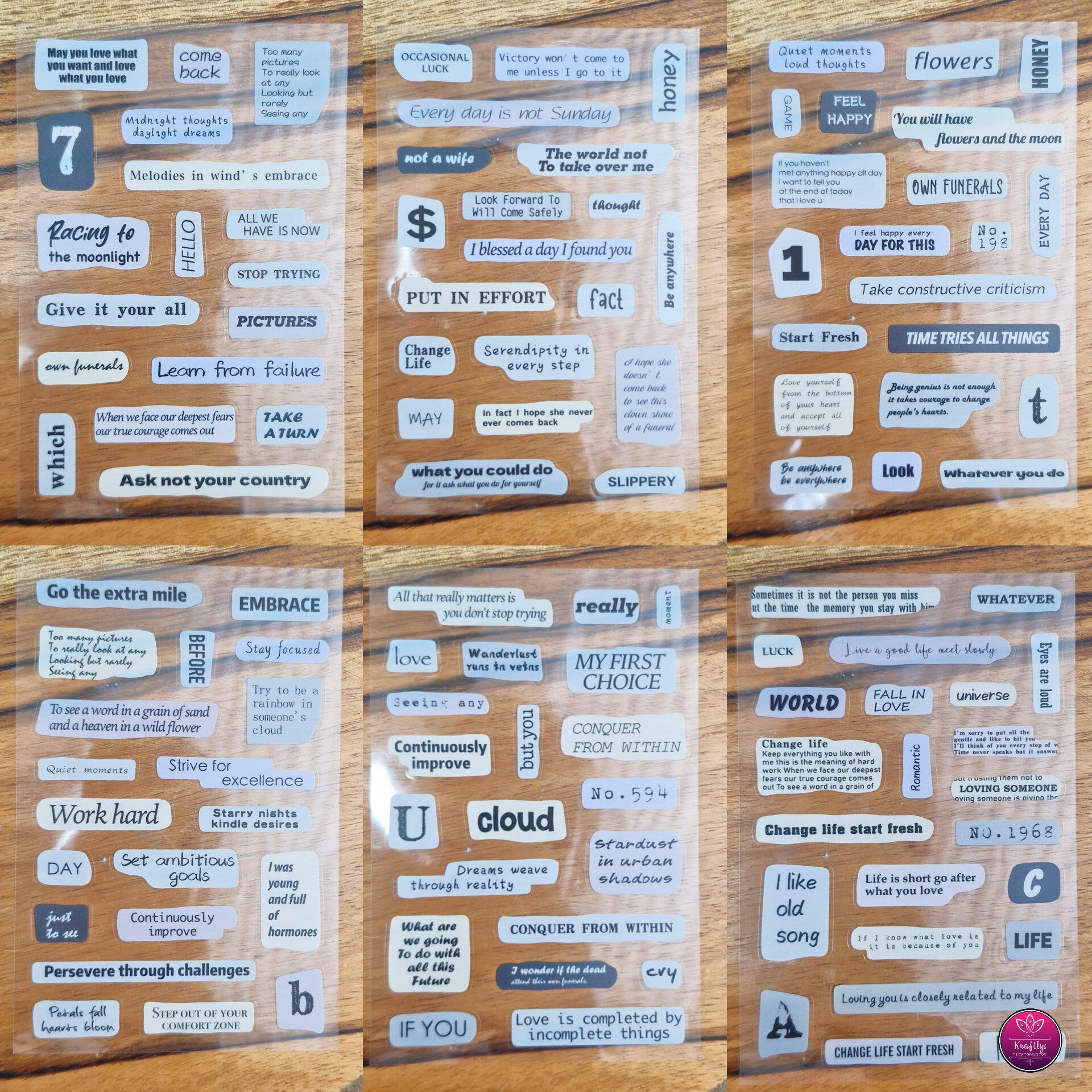 Set of 6 - CUTE TRANSPARENT PINTERESTY WORDINGS STICKER - BEIGE