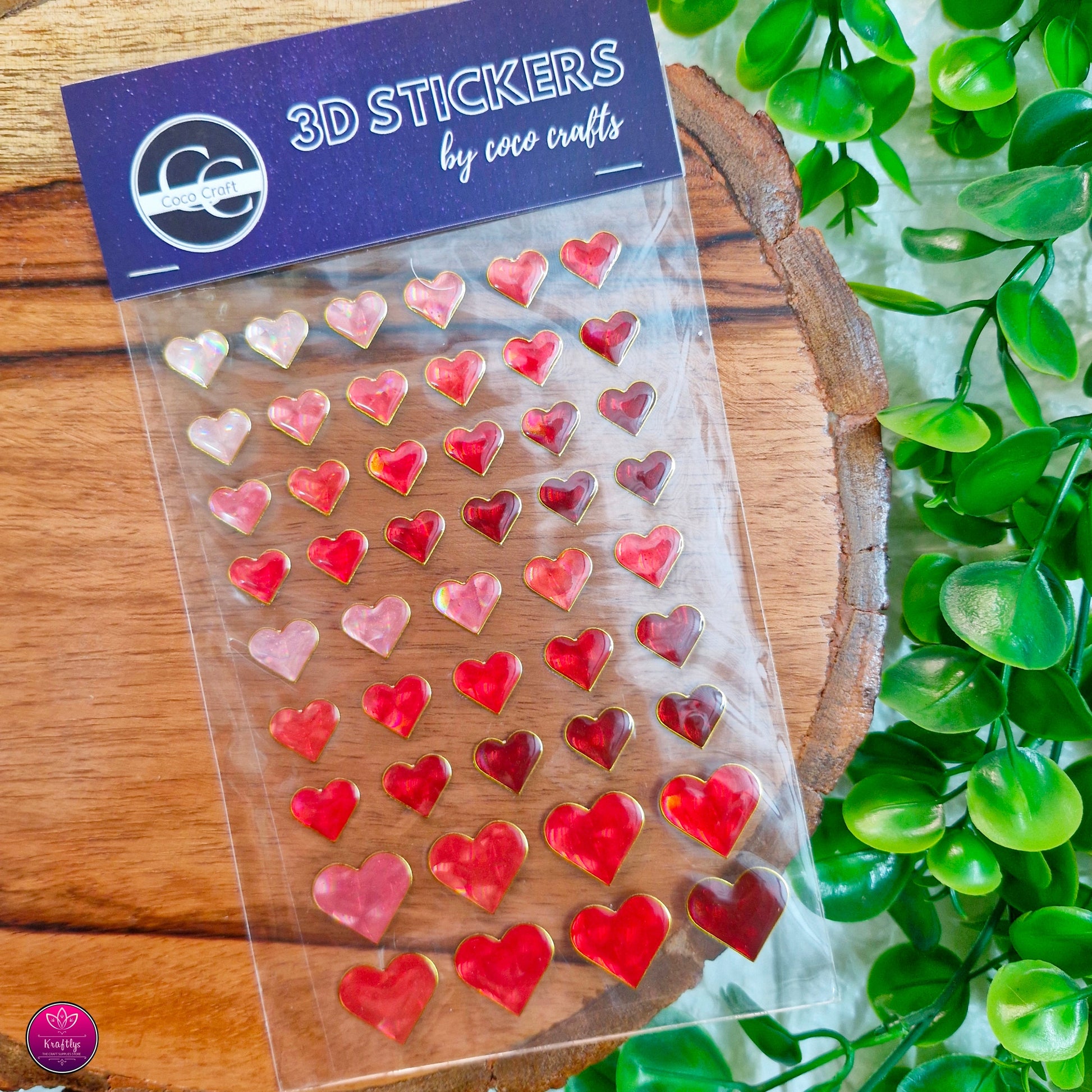 Introducing 3D Resin Hearts, premium stickers perfect for scrapbooking. These unique stickers feature a resin coating, adding a three-dimensional look to your projects. Elevate your crafts with our high-quality stickers.