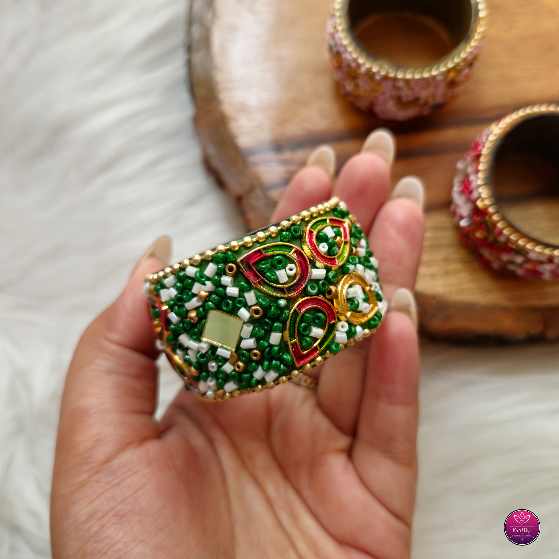 Decorative Beads Embellishment Tea Light Holders 2pc - Handcrafted Floral Diwali Decorative T Light Holder
