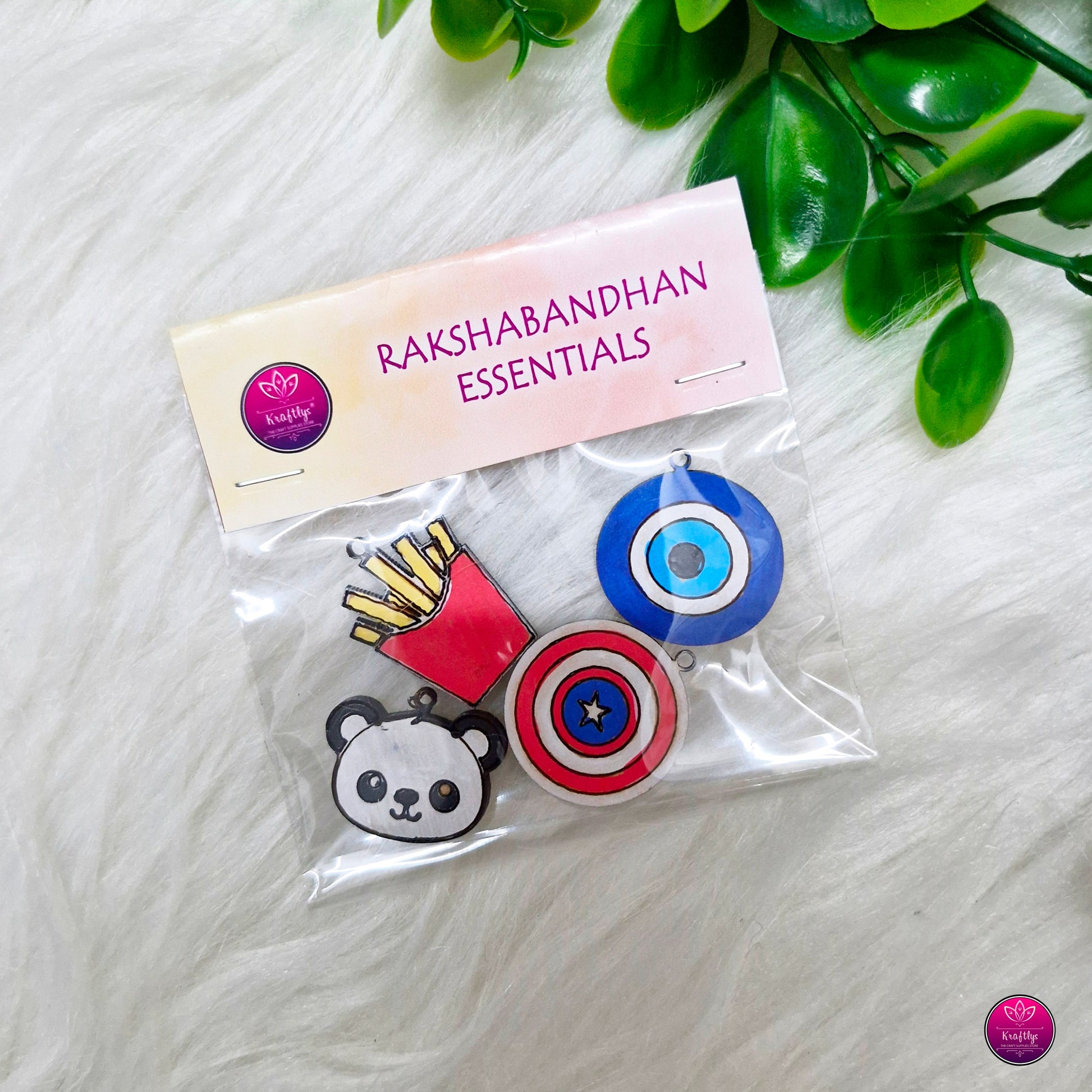"Get ready to celebrate Raksha Bandhan in a unique way with our DIY Rakhi Making Kit! This kit includes everything you need to make your own rakhis. Get creative and show your loved ones how much you care. Keep the traditions alive with a personalized touch. (No more boring traditional rakhis!)"