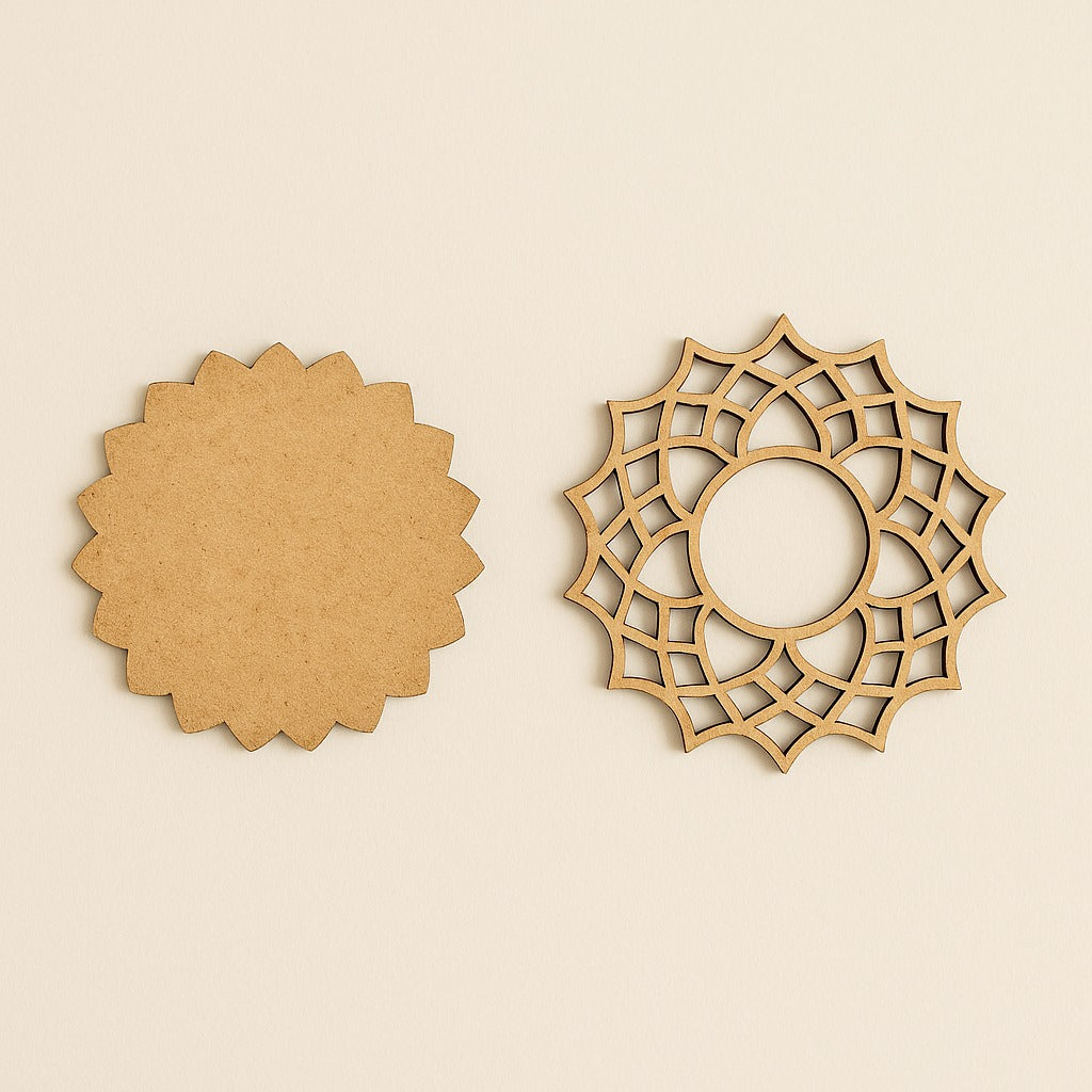Illuminate your home this Diwali with our beautifully crafted MDF Mandala Tealight Holder. Designed with intricate cutwork, it creates a stunning glow when paired with candles or LED tealights. Perfect for pooja rooms, rangoli décor, or festive centerpieces, this eco-friendly holder adds warmth and elegance to your celebrations. Easy to paint, decorate, or embellish, it’s ideal for DIY lovers looking to create personalized Diwali decorations.