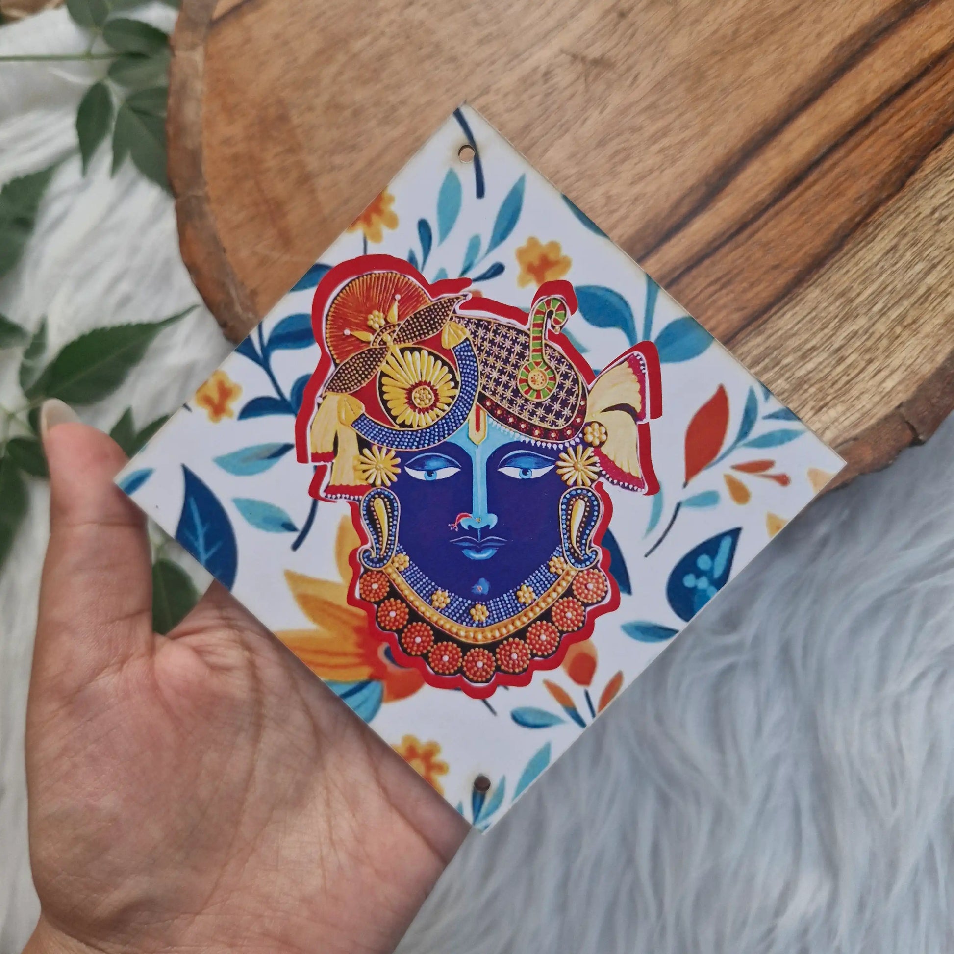 MDF Pichwai Shreenath Ji Square Figurine 2pcs - Printed Wooden Ethnic Diwali DIY Decor