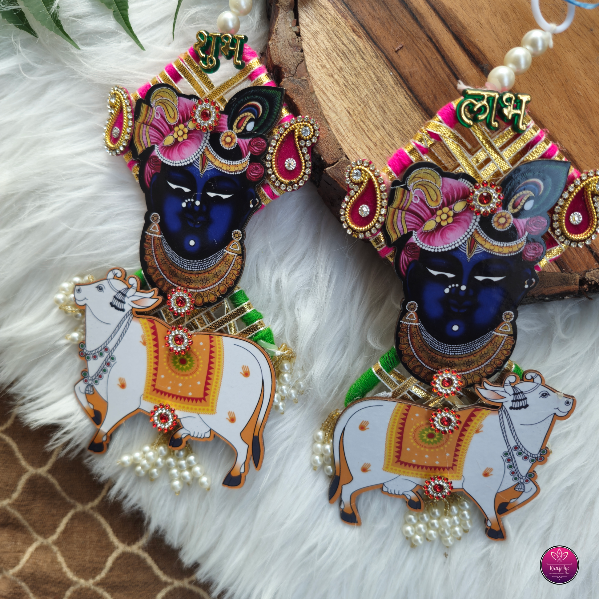 Pichwai Cow Shubh LaabhHandmade Decorative Latkan for Diwali – Door Hanging Toran for Festive Home Décor