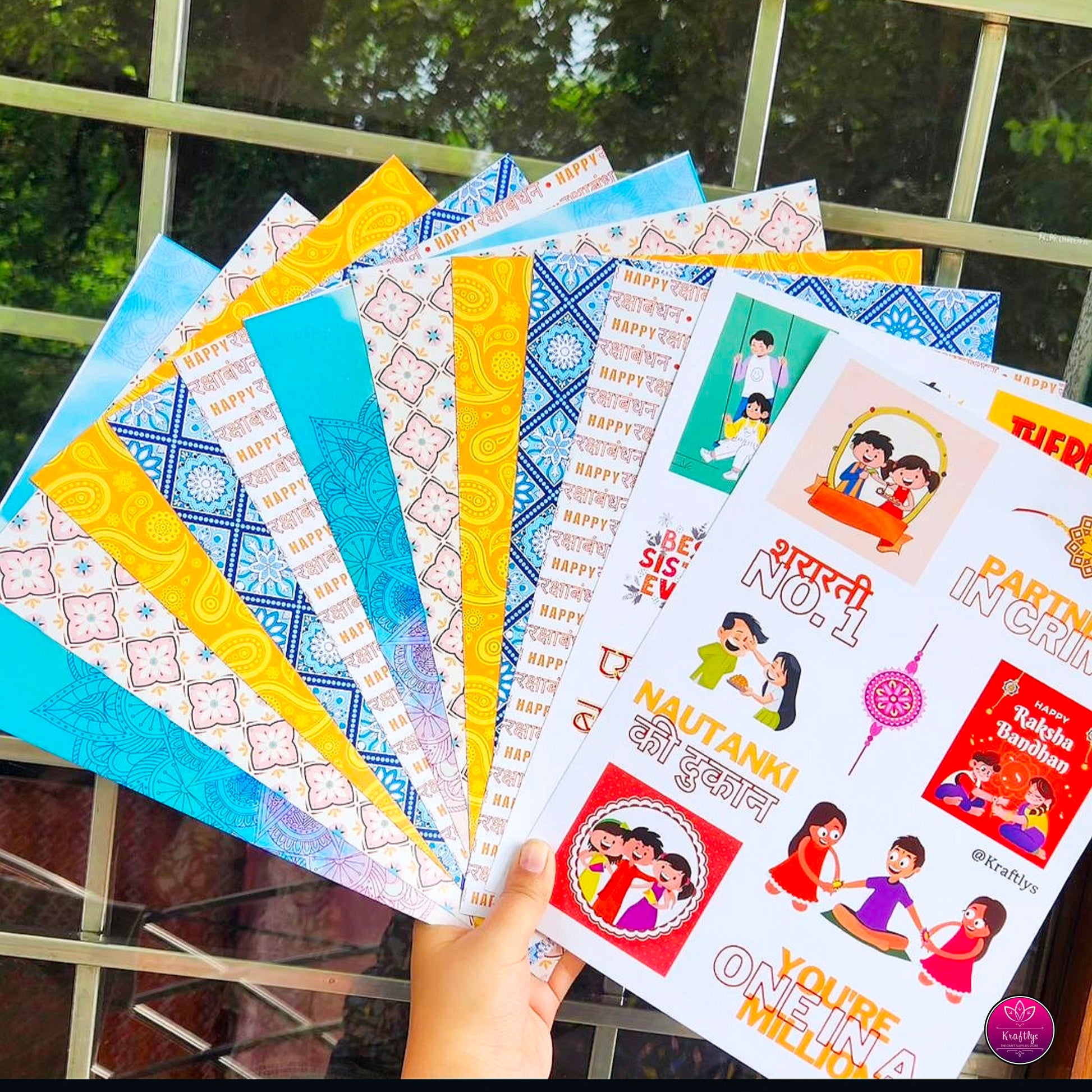 Celebrate the bond between siblings with our Rakhi special papers. Perfect for making gifts for your siblings, this paperpack will express love and appreciation for your special relationship. Share the joy of Rakhi with these beautifully ddesigned sheets.