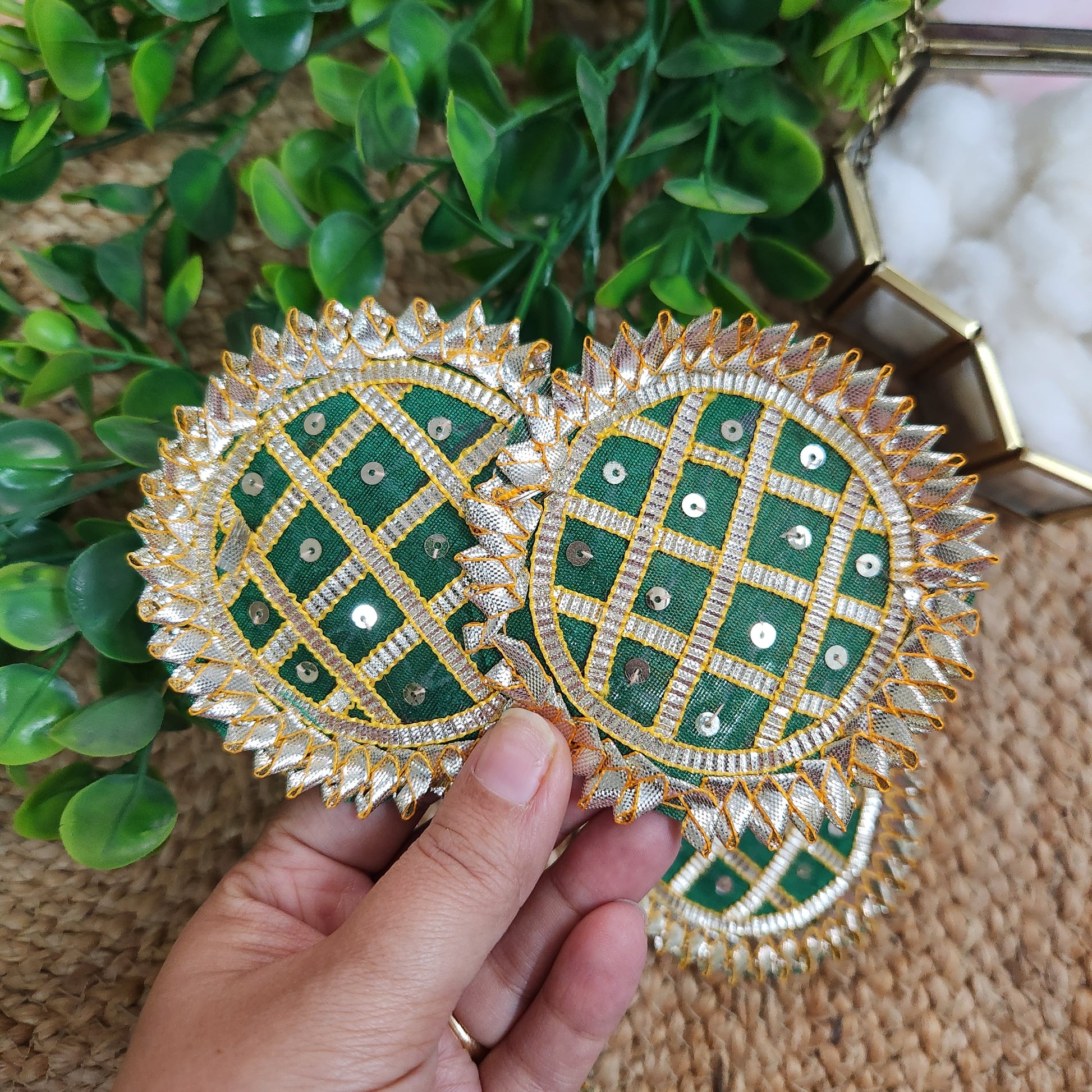 Round Gota Buti 2pc - Handcrafted Floral Gota Patti Embroidered Diwali Decorative Patch