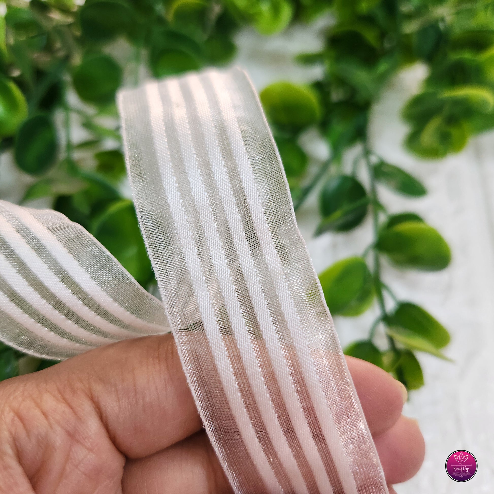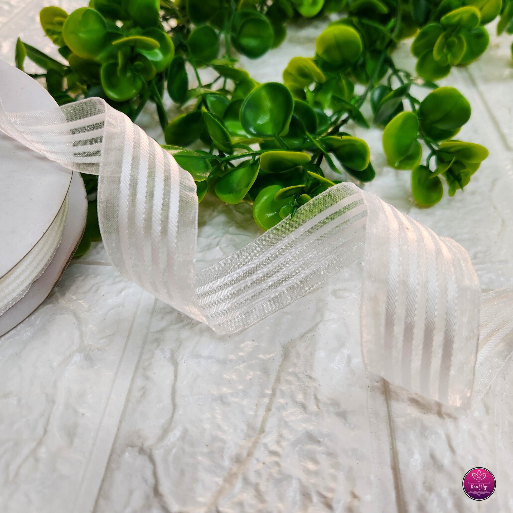 Sheer White Organza Ribbon With Stripes - Decorative Ribbon for Gift Wrapping, Crafts & Events